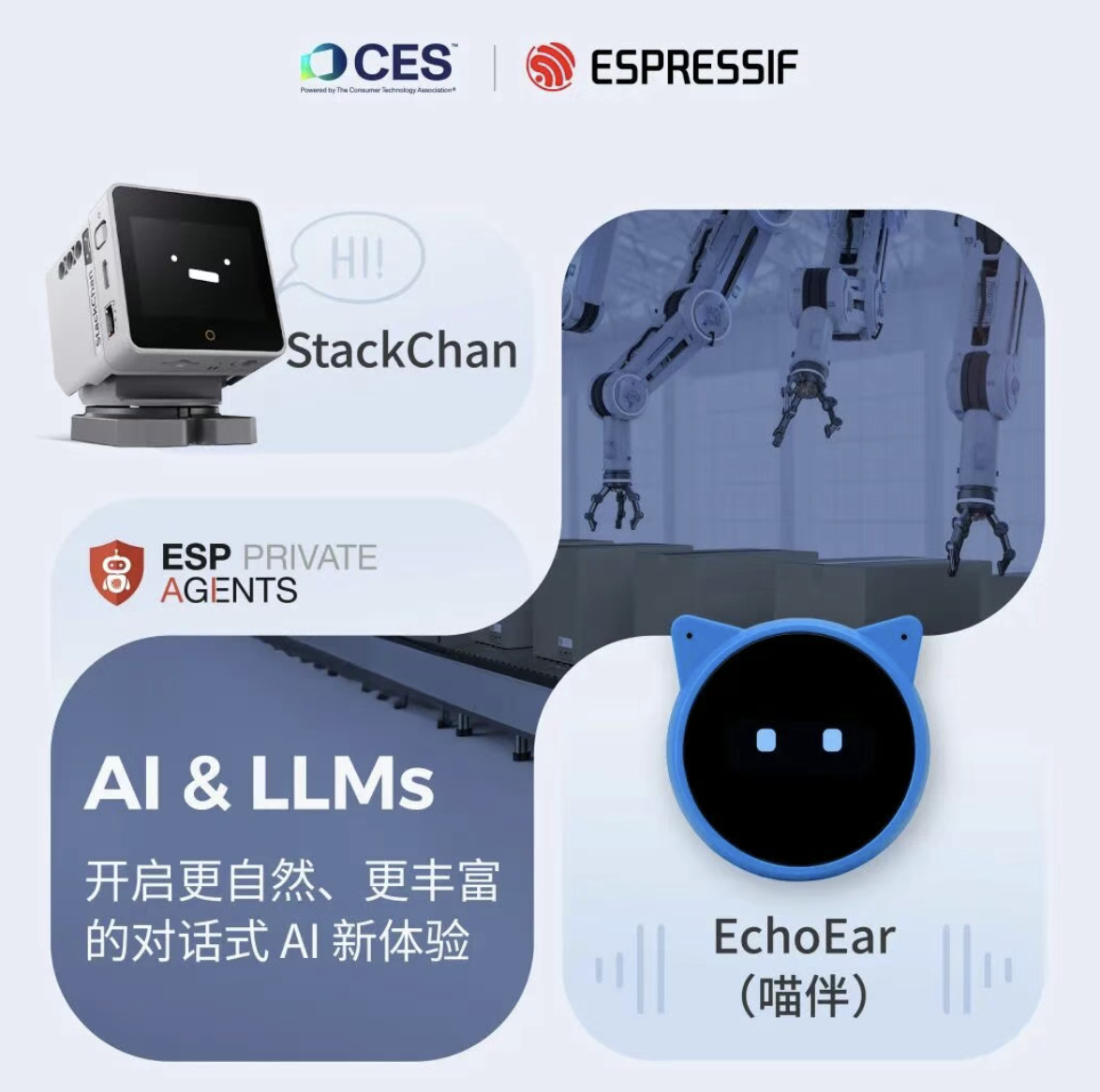 据乐鑫科技方面介绍,在CES 2026现场,该公司带来EchoEar(喵伴)智能语音套件、ESP-LLM-ARM智能机械臂以及来自M5Stack版本的StackChan,展示边缘AI推理与云端大模型协作下的多模态交互、场景理解和精准控制能力,体现设备智能化的最新应用趋势。