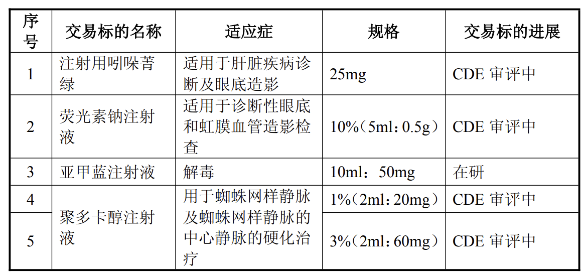 日前,华纳药厂发布公告宣布,拟以1010万元购买前列药业持有的注射用吲哚菁绿、荧光素钠注射液、亚甲蓝注射液、聚多卡醇注射液(两个规格)等5个制剂项目,目前,这5款产品均未获批上市,其中有4款正处于审评阶段。