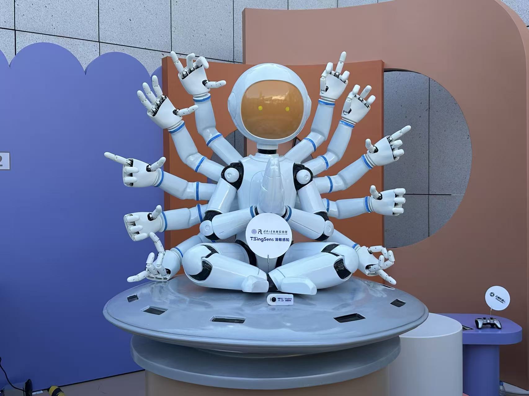 千手机器人是清华大学未来实验室与清敏感知联合推出的情感交互机器人,使用通义千问大模型驱动配合智能灵巧手联动,可以实现语音问答交流和猜拳交互的联动。