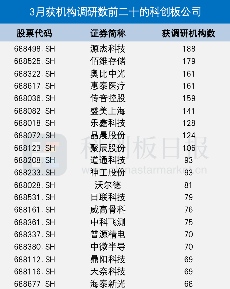 3月共111家科创板公司获机构调研 企业新业务及新品商业化进展等被重点关注|盘点