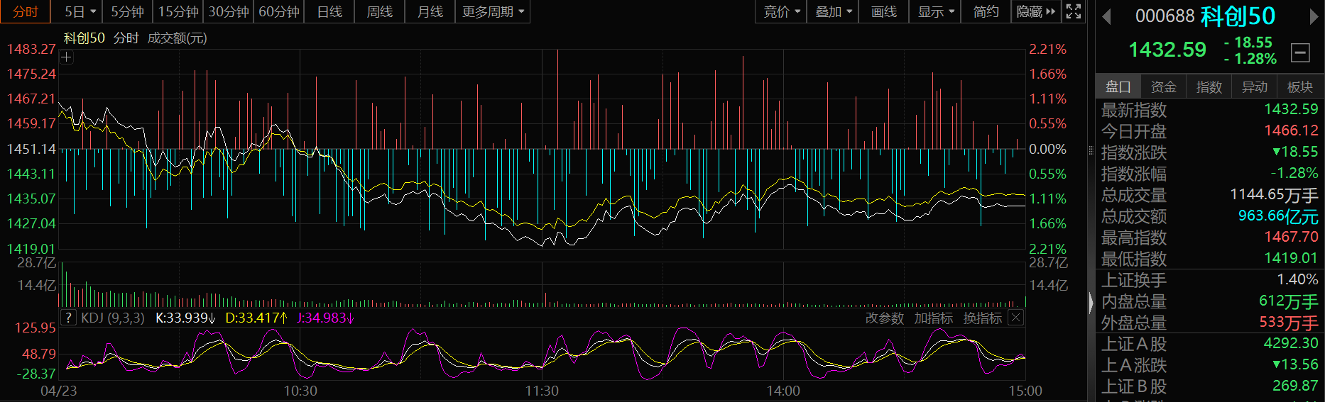科创板收评:科创50指数收跌1.28% AI硬件方向陷入调整