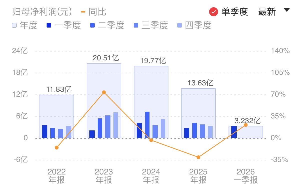 石头科技财报显示,2026年一季度实现营业收入42亿元,同比增长23.31%,但增幅远低于2025年同期;实现归母净利润3.23亿元,同比增长20.83%。