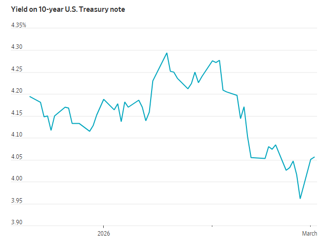 从本周迄今的走势看,美以对伊朗的袭击几乎终结了美国国债持续数周的上涨行情,并推动10年期国债收益率重回4%上方,这一走势在未来可能推高企业和消费者的借贷成本。