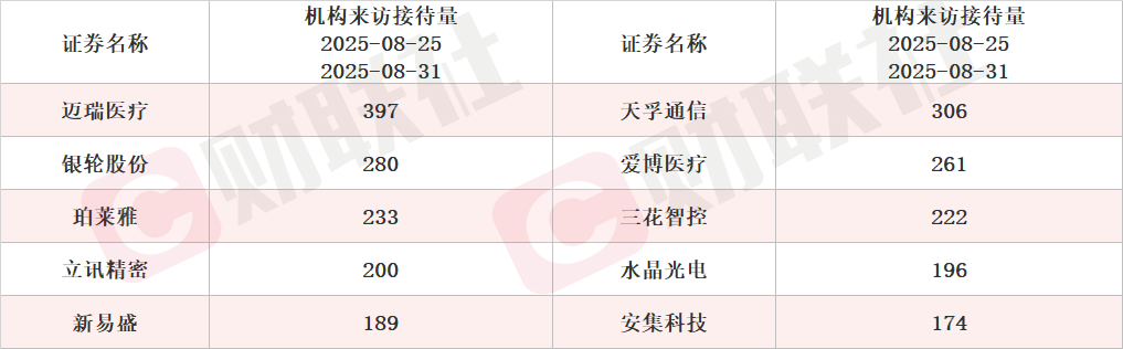 具体上市公司方面,据Choice数据统计,大族数控接受调研次数最多,达到5次。从机构来访接待量统计,迈瑞医疗、天孚通信和银轮股份位列前三,分别为397家、306家和280家。