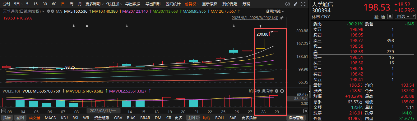 二级市场上,天孚通信周四20CM涨停,周五收盘涨超10%。