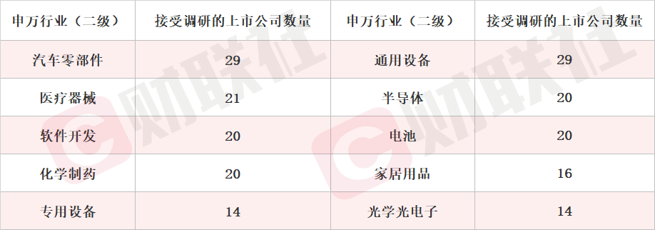 细分领域看,汽车零部件、通用设备和医疗器械板块位列机构关注度前三名。此外,家居用品、专用设备等行业机构关注度有所提升。