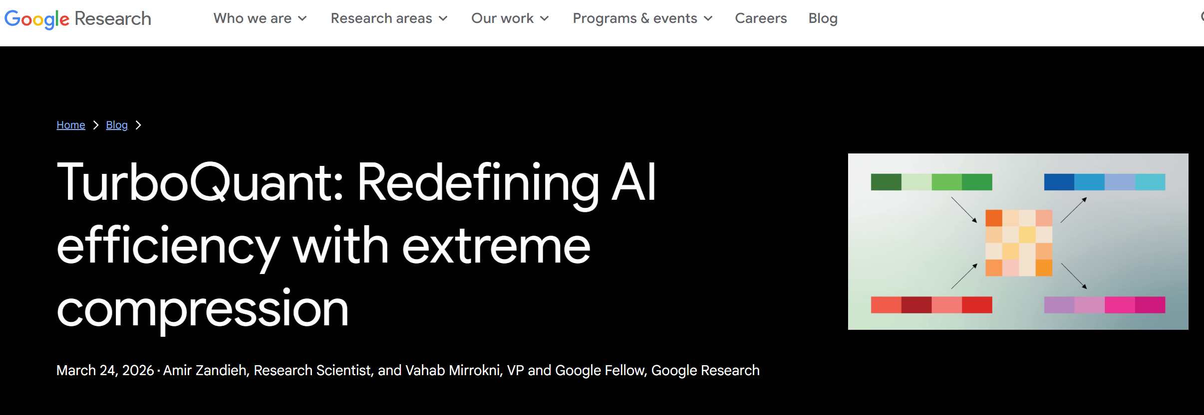 谷歌推出压缩算法TurboQuant 宣称实现约6倍内存节省