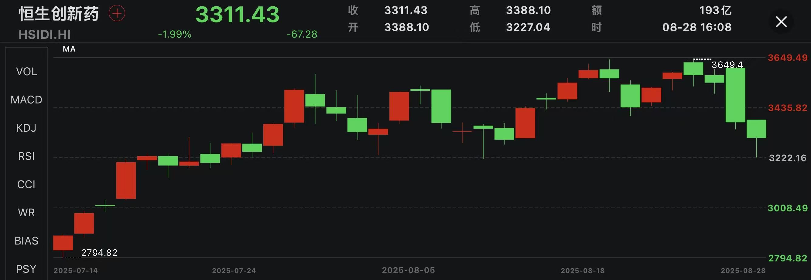 8月28日讯(编辑 冯轶)近几日,港股创新药板块持续调整。