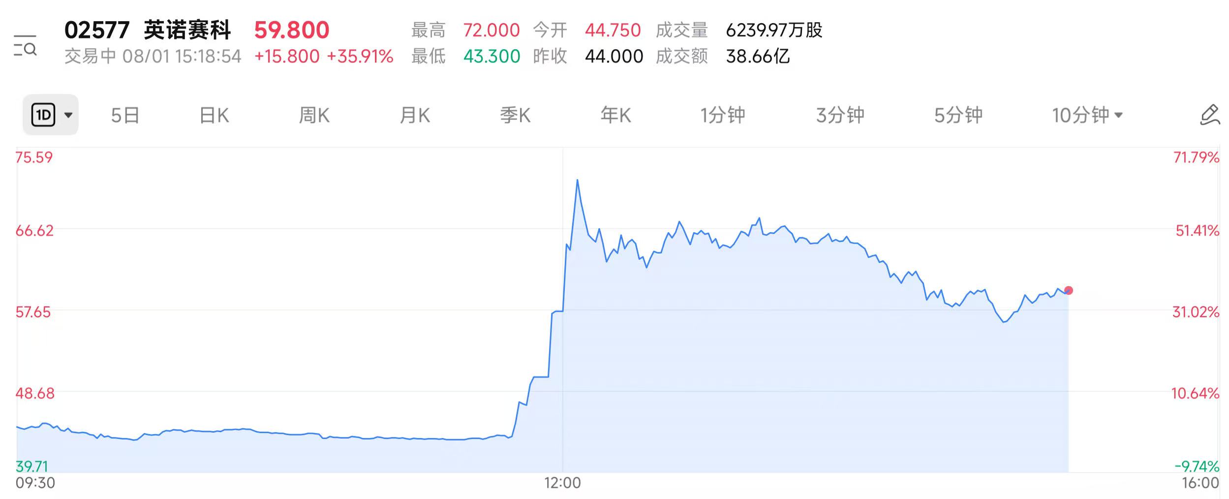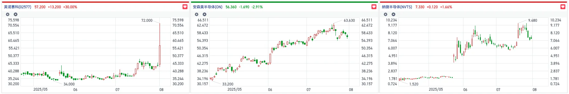 8月1日讯(编辑 冯轶)受被纳入英伟达800V架构合作名单利好刺激,今日在港上市的国内氮化镓龙头企业英诺赛科(02577.HK)盘中一度拉涨逾60%,股价刷新上市以来新高,引发市场关注。
