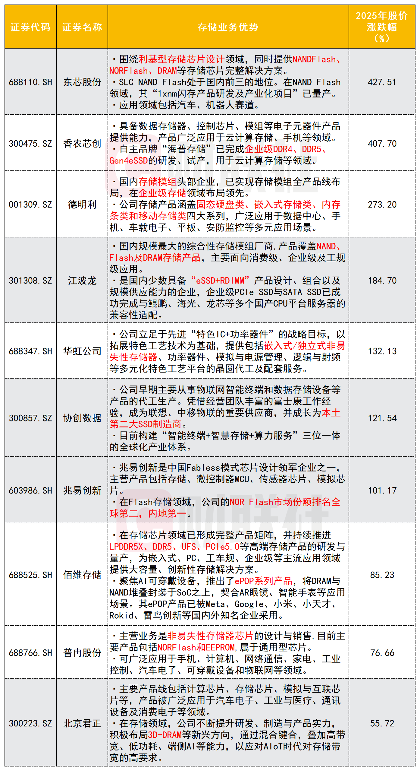 A股头部存储公司企业优势: