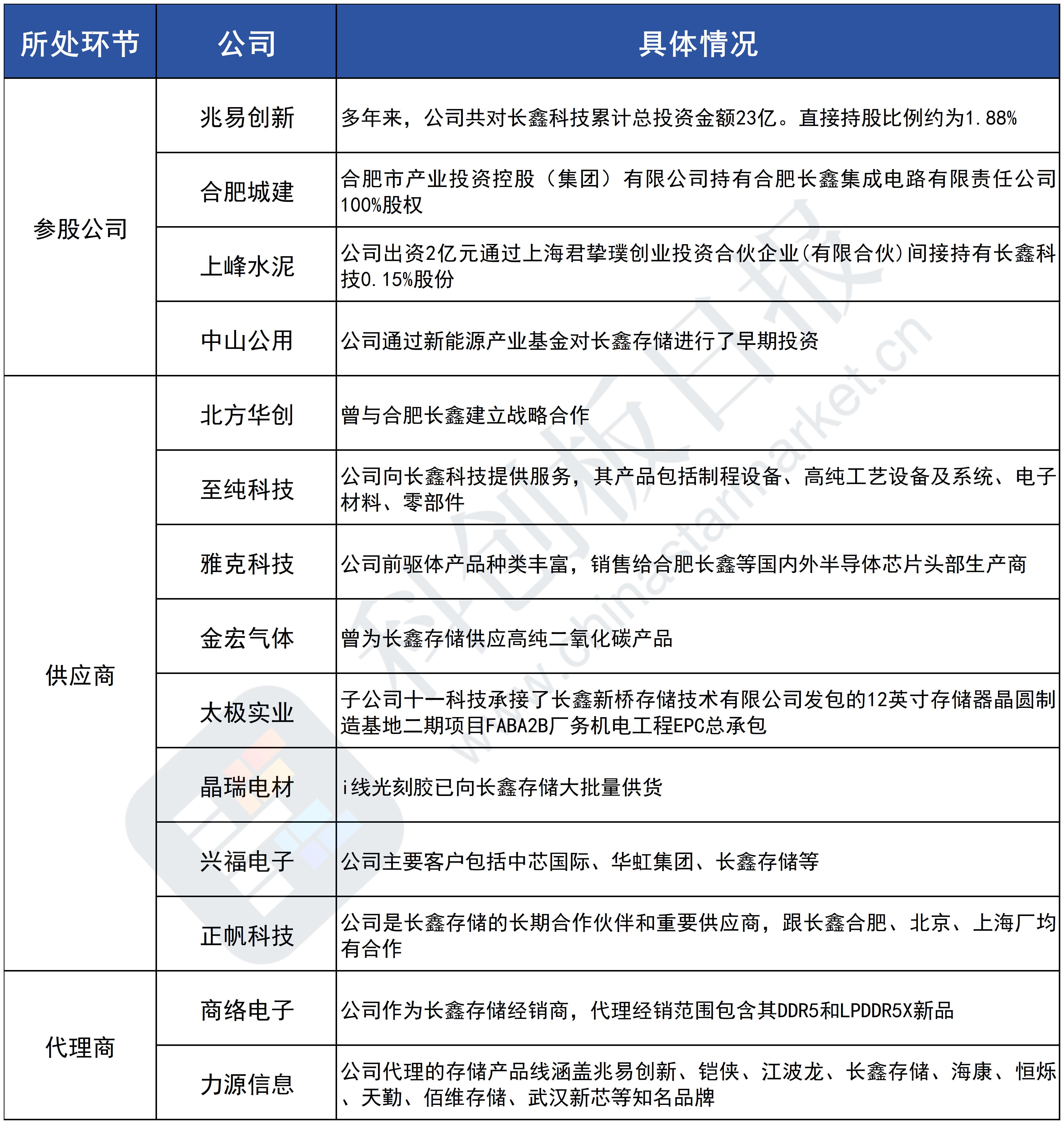 据《科创板日报》不完全统计,A股中长鑫科技上市概念股包括: