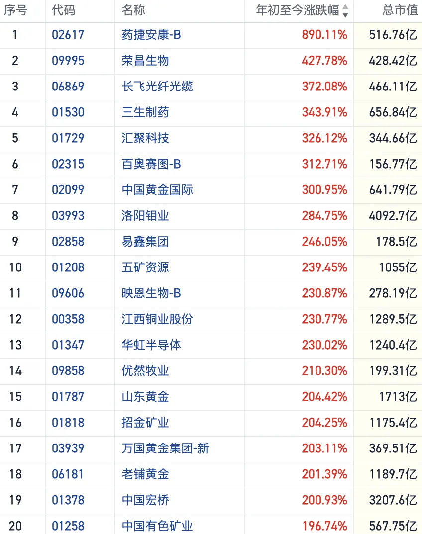 截至12月24日,588只港股通标的中有463只个股年内涨幅为正,占比约79%。这一比例较港股大市整体高出约12个百分点,其中年内达成翻倍涨幅的就有76家公司。