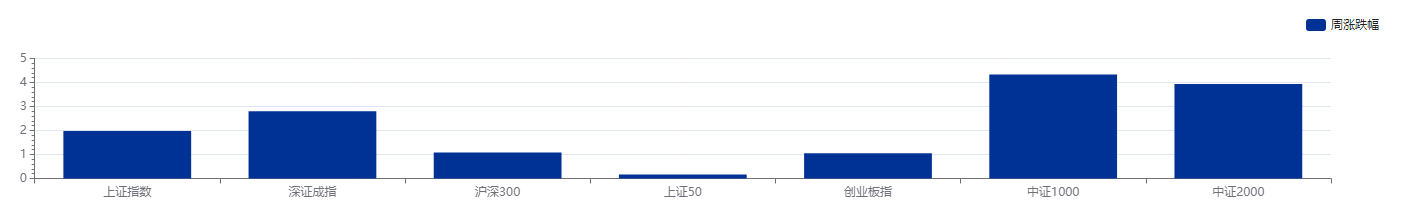 上周主要权益指数上涨。其中,上证指数上涨1.98%,深证成指上涨2.8%,沪深300上涨1.08%,上证50上涨0.17%,创业板指上涨1.05%。中证1000和中证2000分别上涨4.34%、3.94%。