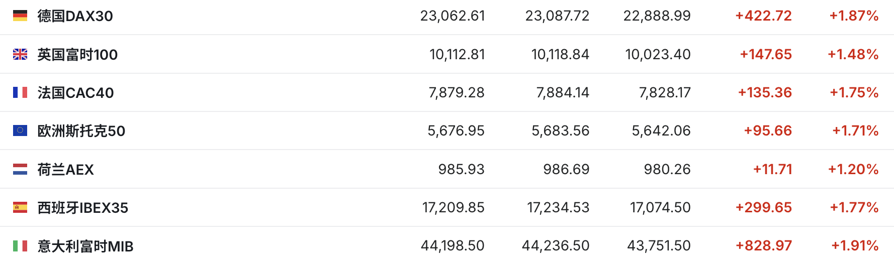 3月25日讯(编辑 夏军雄)周三,受有关美国向伊朗提出结束冲突方案的消息提振,美股股指期货大幅上涨,国际油价重挫,欧洲主要指数集体大涨。