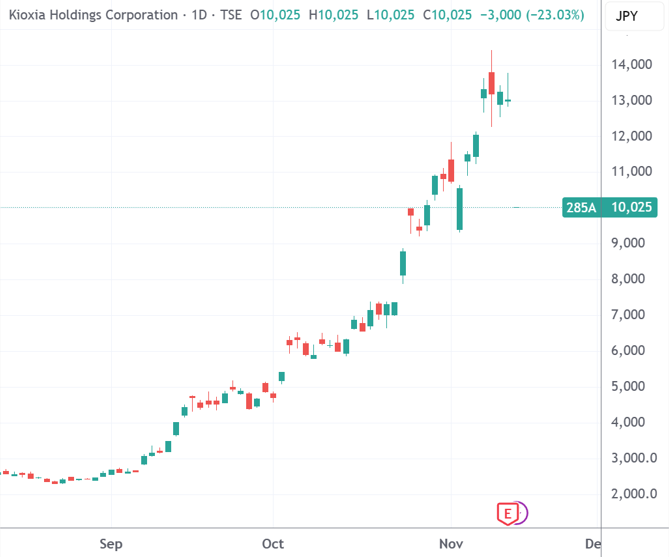 作为今天明星科技股中跌得最惨的一家,全球三大NAND内存厂商之一的铠侠(Kioxia)发布半年报后市值蒸发23%。