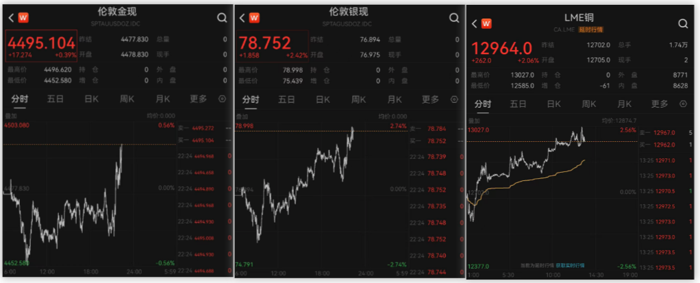 黄金、白银、铜等热门金属基本维持上涨态势。