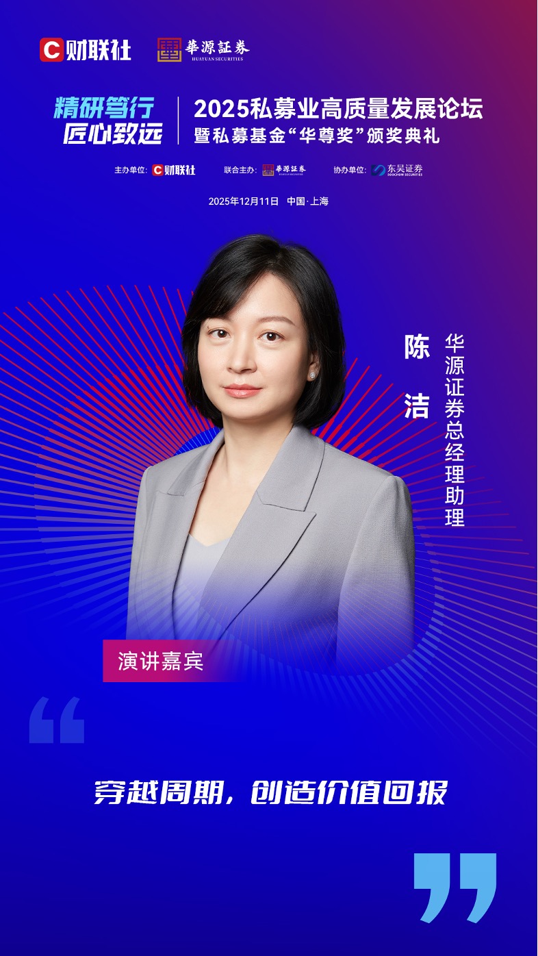 压轴的主题演讲来自华源证券总经理助理陈洁,她将围绕《私募基金与财富管理转型》展开系统阐述。当前,随着银行理财净值化转型完成、公募基金费率改革推进,高净值客户资产配置中私募基金的权重和复杂性同步提升。