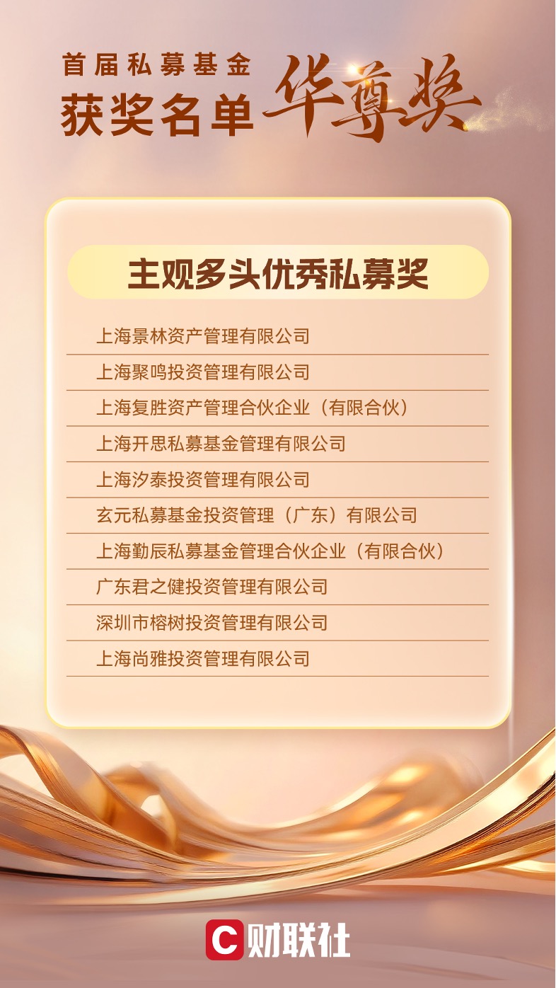 主观多头优秀私募奖:上海景林资产管理有限公司、上海聚鸣投资管理有限公司、上海复胜资产管理合伙企业(有限合伙)、上海开思私募基金管理有限公司、上海汐泰投资管理有限公司、玄元私募基金投资管理(广东)有限公司、上海勤辰私募基金管理合伙企业(有限合伙)、广东君之健投资管理有限公司、深圳市榕树投资管理有限公司、上海尚雅投资管理有限公司。