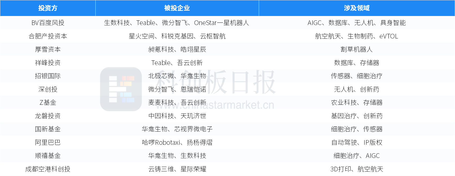 本周部分活跃投资方列举如下: