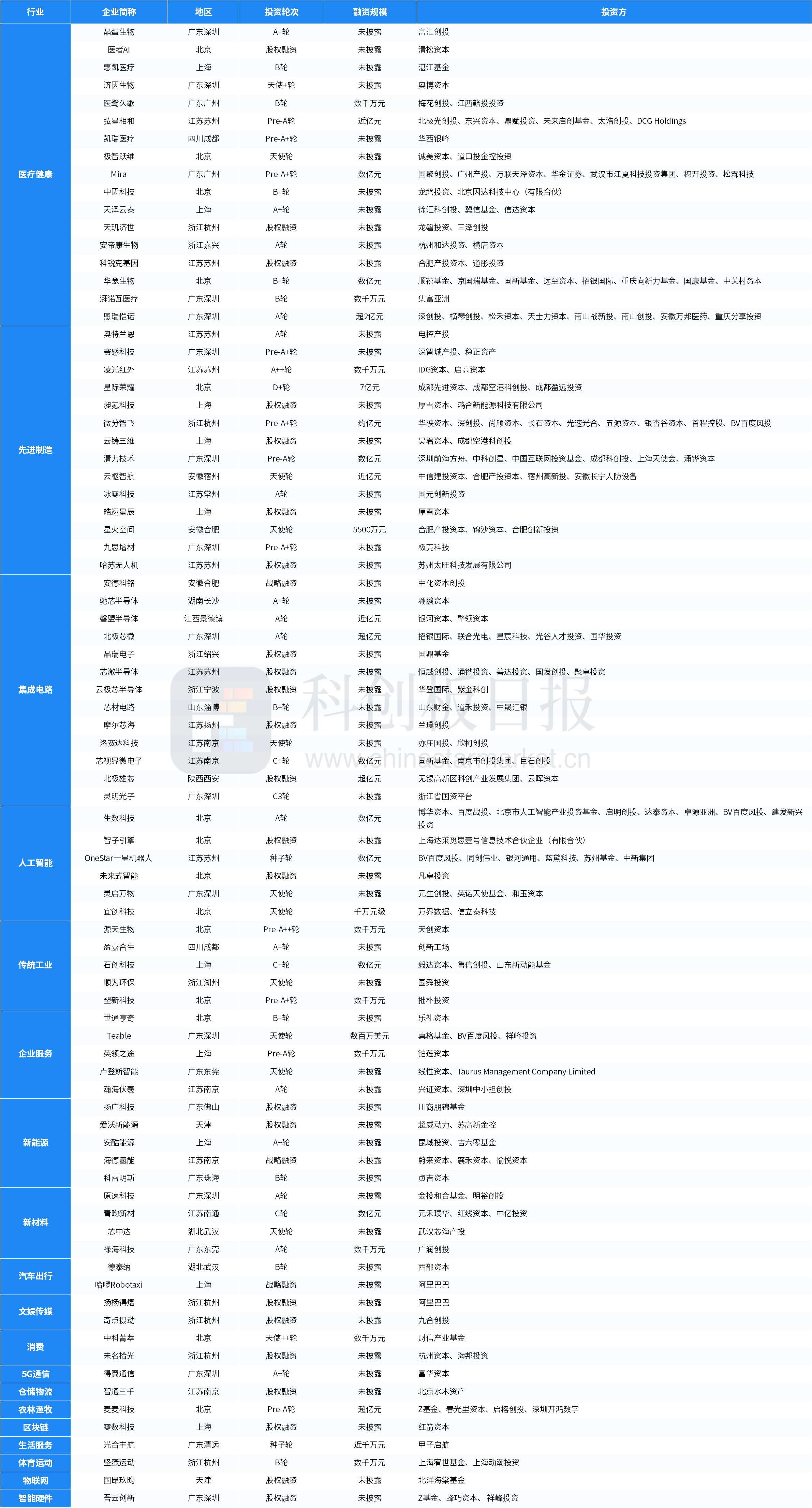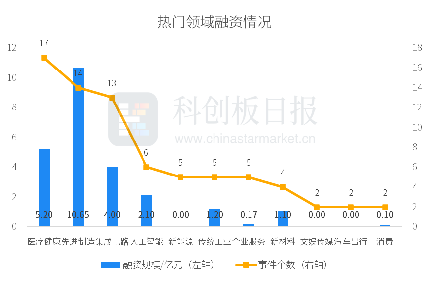 从投资事件数量来看,本周医疗健康、先进制造、集成电路、人工智能等领域较活跃;从融资总额来看,先进制造披露的融资总额最多,约10.65亿元。星际荣耀完成由成都先进资本领投,成都空港科创投、成都盈远投资跟投的D+轮融资首批资金7亿元交割,为本周披露金额最高的投资事件。