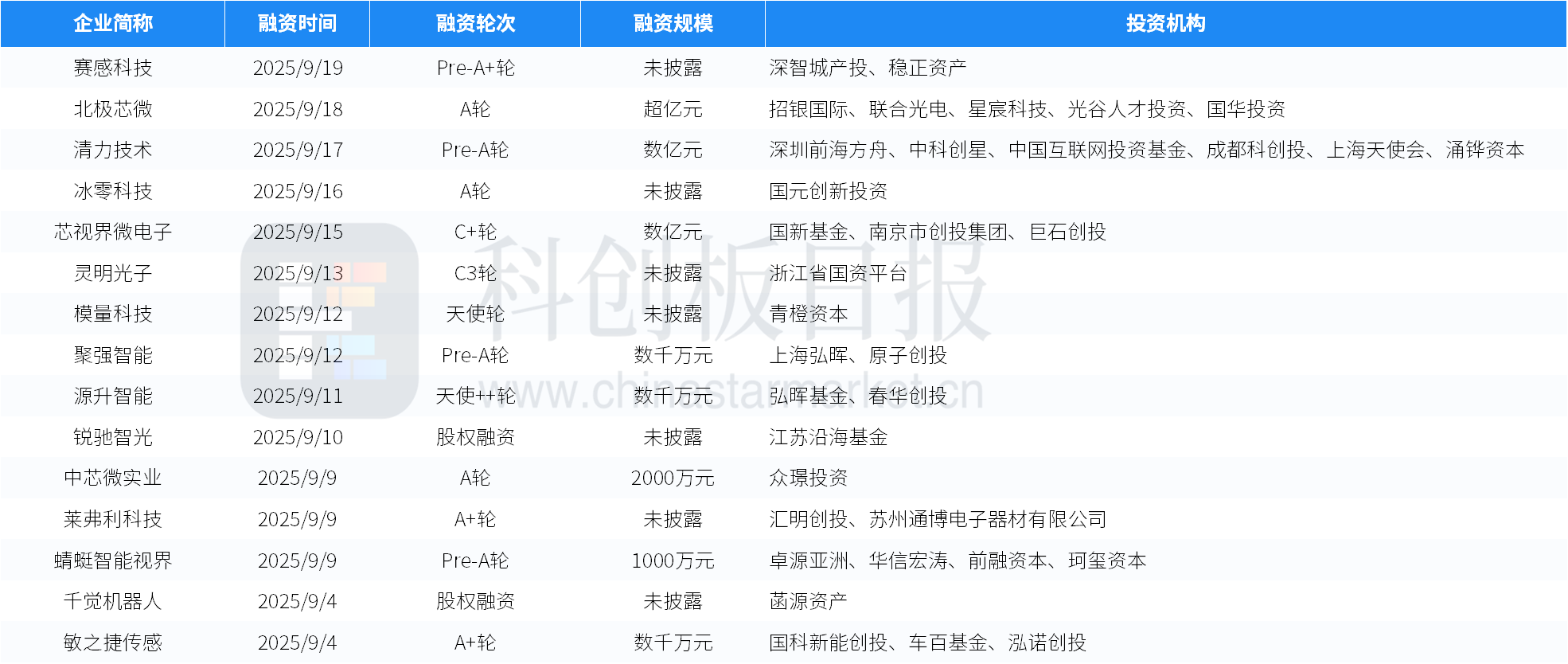 本周投融资事件列表