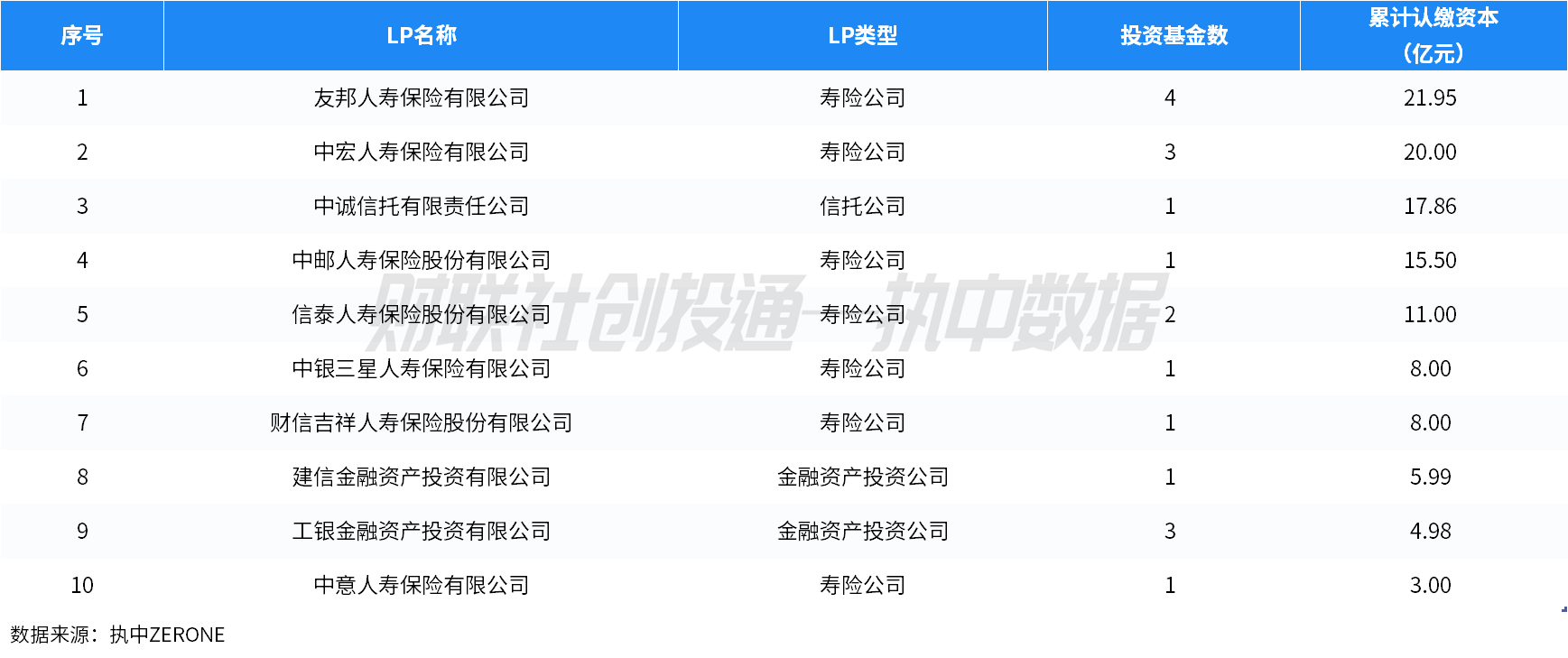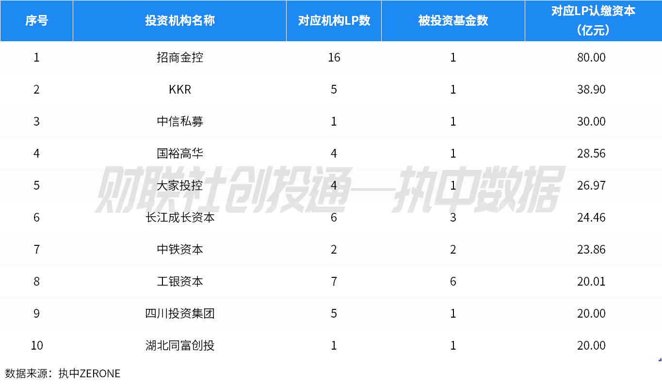 (二)金融机构LP出资规模TOP10