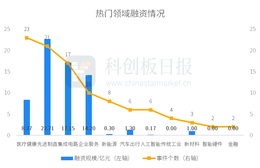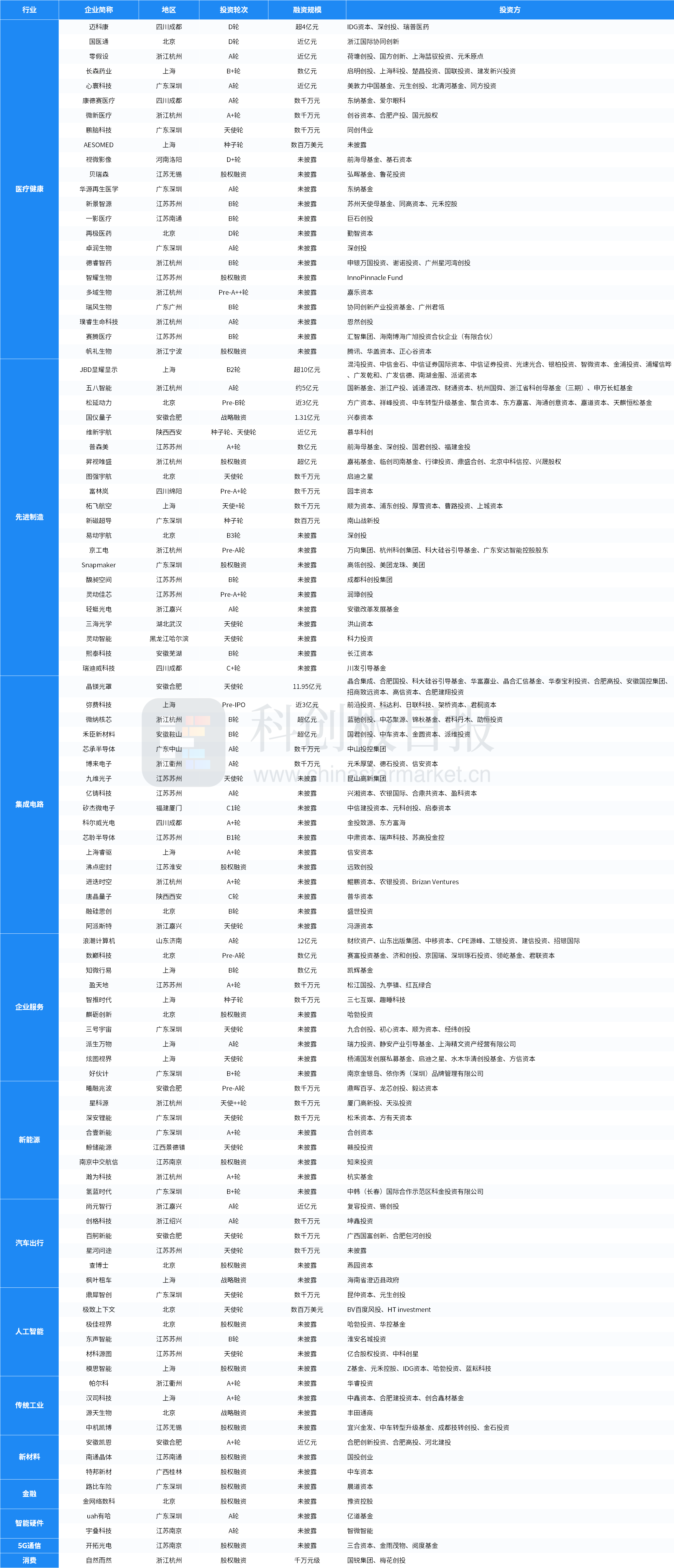 从投资事件数量来看,本周医疗健康、先进制造、集成电路、企业服务、新能源等领域较活跃;从融资总额来看,先进制造披露的融资总额最多,约22.71亿元。浪潮计算机完成由山东财欣公司、山东出版集团、中移资本、CPE源峰、工银金融、建信金融、招银国际等参与的12亿元A轮融资,为本周披露金额最高的投资事件。
