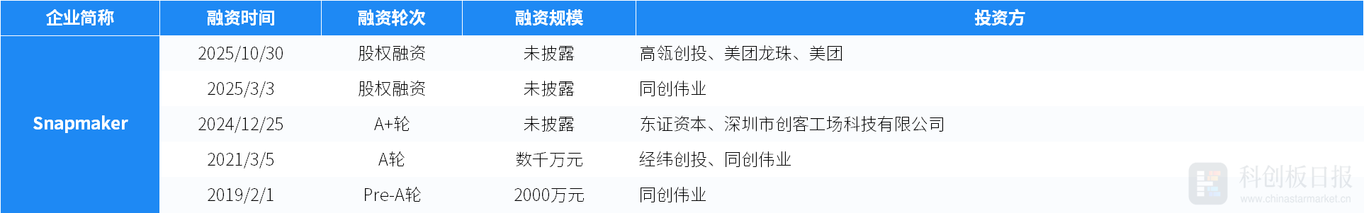 近日,Snapmaker关联公司深圳快造科技有限公司发生工商变更,新增投资方高瓴创投、美团龙珠、美团,同时注册资本由704.5454万元增至814.9240万元。