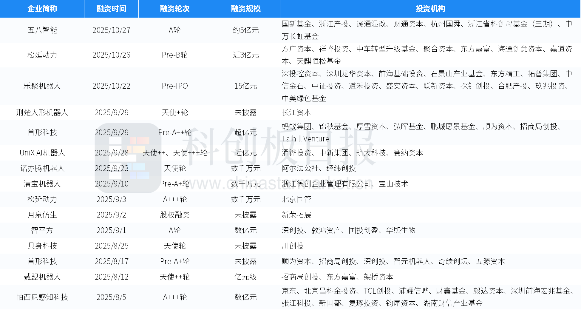 创投通数据显示,近一年来,国内人形机器人领域部分获投案例如下。