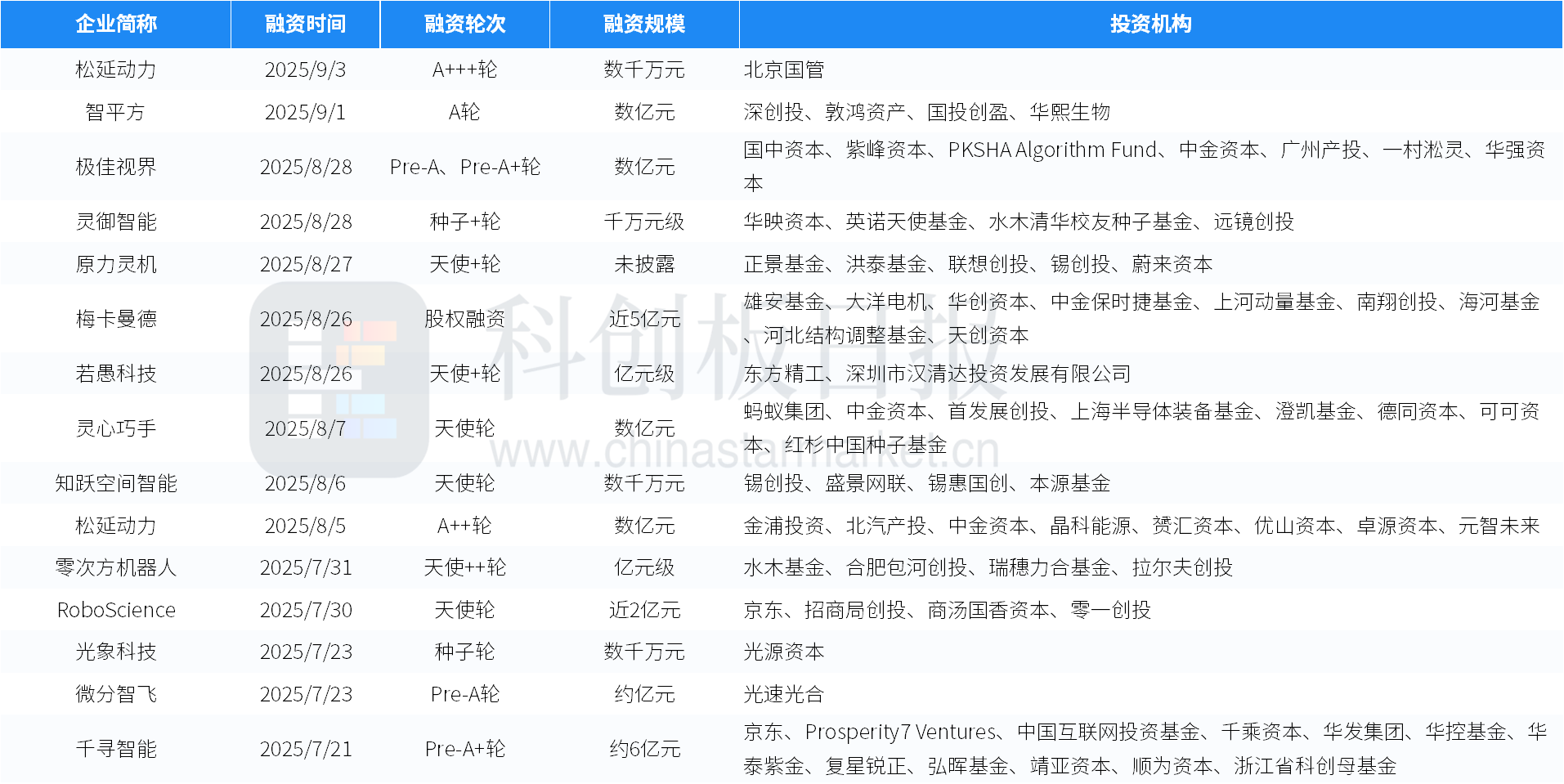 创投通数据显示,近一年来,国内具身智能领域部分获投案例如下。
