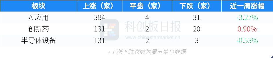 作为对比,本周AI应用、创新药、半导体设备二级市场表现如下表所示。