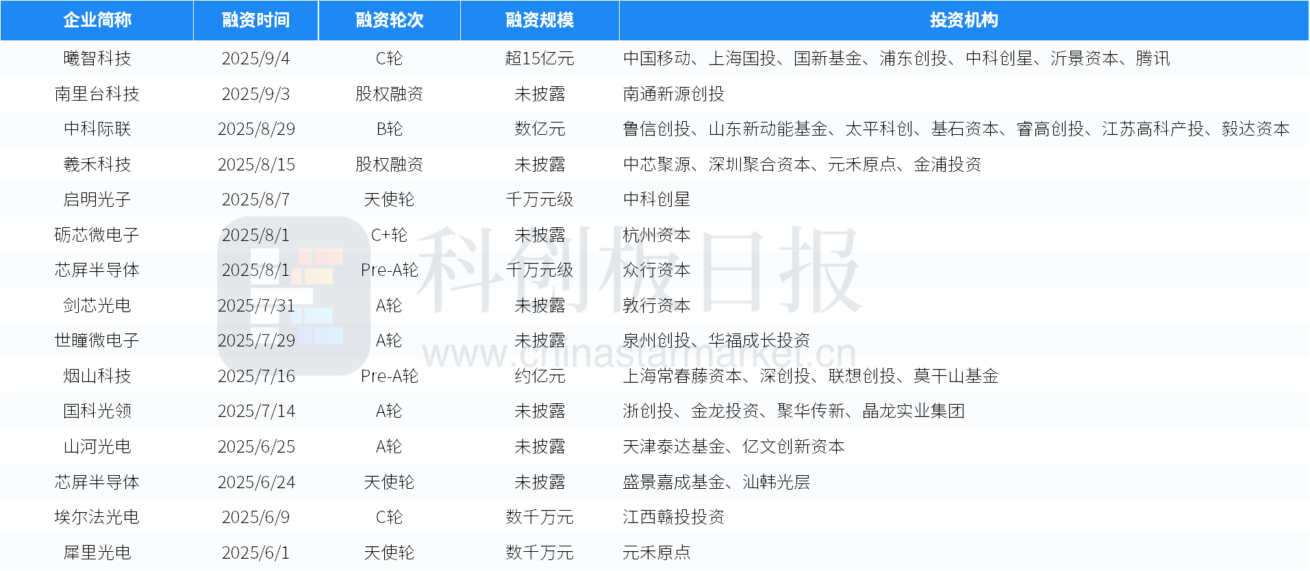 创投通数据显示,近一年来,国内光电芯片领域部分获投案例如下。