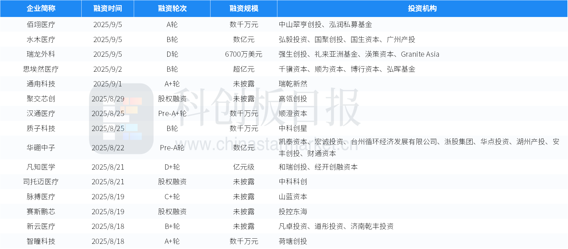 创投通数据显示,近一年来,国内医疗器械领域部分获投案例如下。