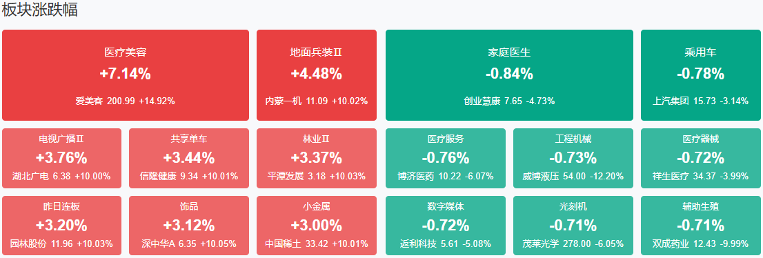 板块方面,军工、小金属、猪肉、国资云板块涨幅居前;光刻机、游戏、CPO概念股表现落后。