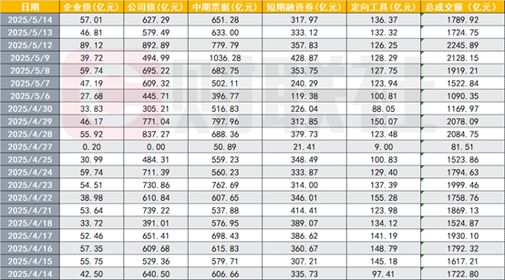 五一长假后,信用债市场的成交活跃度迅速恢复。Wind数据显示,近5个交易日,银行间与交易所市场非金信用债(企业债、公司债、中票、短融、定向工具)的日均成交额超过1960亿元,5月9日、5月12日的日成交额都超过了2100亿元。
