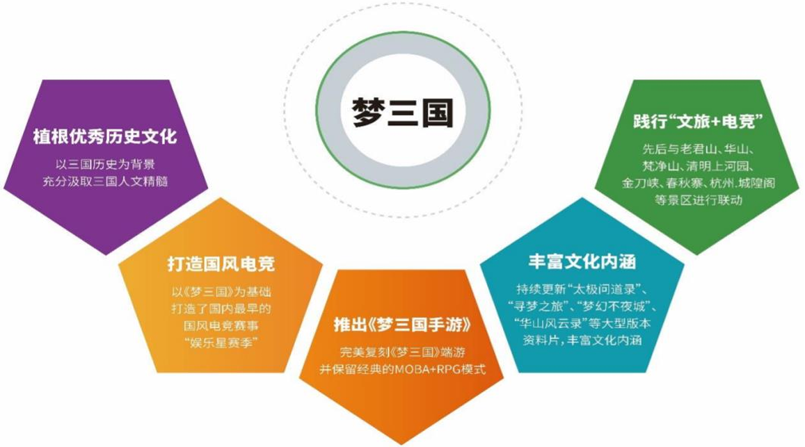 以国风电竞为名片,公司联合多个文化景点为游戏赋予传统文化内涵。梦三国系列作为三国题材游戏,在与传统文化融合方面有着先天优势。公司已经与老君山、华山等具有文化历史底蕴的景区进行了联动,并依据相应景区的特点推出了多个大型资料片,形成“文旅+电竞”的发展形式,梦三国系列游戏不仅限于满足日常娱乐,还承担了传统文化的传播载体的职能。2019-2022年,公司连续入选由中宣部、文化旅游部等五部委联合评选认定 的“国家文化出口重点企业“,在文化传播价值层面得到国家级别的认可。