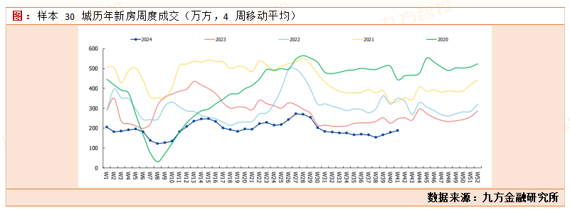 从目前的刺激房地产市场政策来看,10月份的地产销售数据会逐步企稳向好。10 月累计新房成交面积方面,样本 30 城共计 209.5 万方,同比-16.1%;一线城市为 50.9 万方,同比 3.1%;二线城市为 96.9 万方,同比-26.5%;三线城市为 61.6 万方, 同比-10.1%。 从今年累计 41 周新房成交面积同比看,样本 30 城共计 8012.4 万方,同比-32.2%;一线城市为 1955.6 万方,同比-25.7%;二线城市为 3810.0 万方,同比-38.9%;三线城市 为 2246.9 万方,同比-23.6%。其中一线城市中,北京(-29.7%)、上海(-27.9%)、广 州(-20.5%)、深圳(-18.5%)。可以看出10月份以来,新房成交面积开始逐步企稳回升。