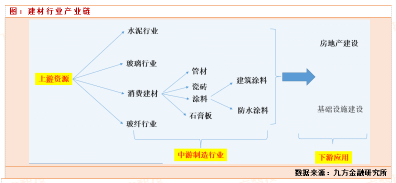 建材行业属于房地产和基建的上游,受益于房地产市场的复苏。整体看,建材板块子行业较多,分为两大类:大宗建材、差异型建材。大宗商品有水泥、玻璃、玻纤,石膏板,产品同质化严重,固定资产占比都在 50%以上,下游客户关注的只是价格,行业属性更加偏周期属性。企业间竞争力体现来自各自的成本控制能力。这部分行业投资机会主要来自产品价格的周期性波动,和经济扩张强度相关,价格的波动主要看供给和需求的变化。