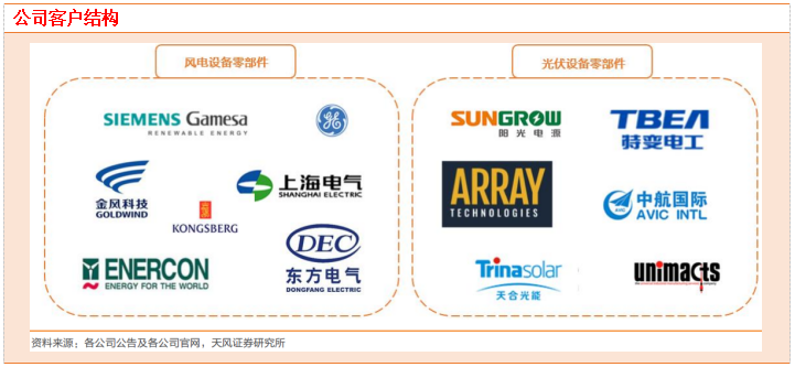 公司先后与西门子集团、通用电气、ATI等全球知名企业,以及上海电气、特变电工、阳光电源等国内知名上市公司建立了良好的合作关系,与Nextracker、Vestas等高端品牌已实现小批量供货,客户结构得到进一步丰富。