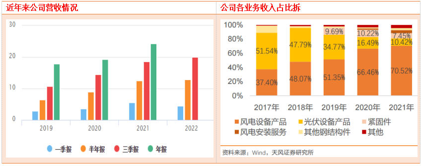 分地区看,公司过去业务主要集中在海外,自2019年开始公司国内业务增长显著。风电设备主业持续发力,产品及客户端拓展创造新增长点。自成立以来,公司营收端稳步增长。