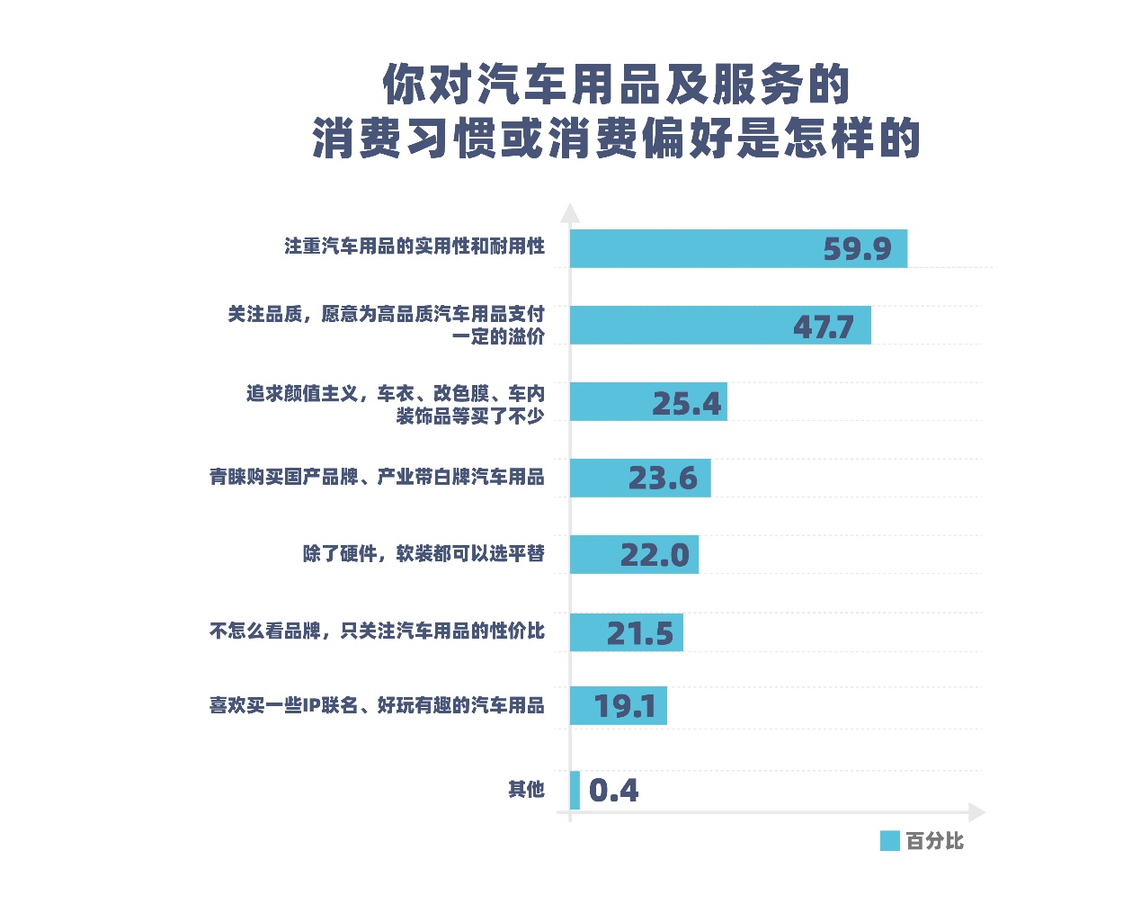 汽车用品消费习惯呈现出对产品实用性和耐用性、品质的高度关注。调研显示,消费者在选择汽车用品时,有59.9%的人更倾向于那些既实用又耐用的产品,47.8%的受访者愿意为高品质汽车用品支付一定的溢价。此外,国产品牌和产业带白牌产品因其高性价比也受到欢迎。