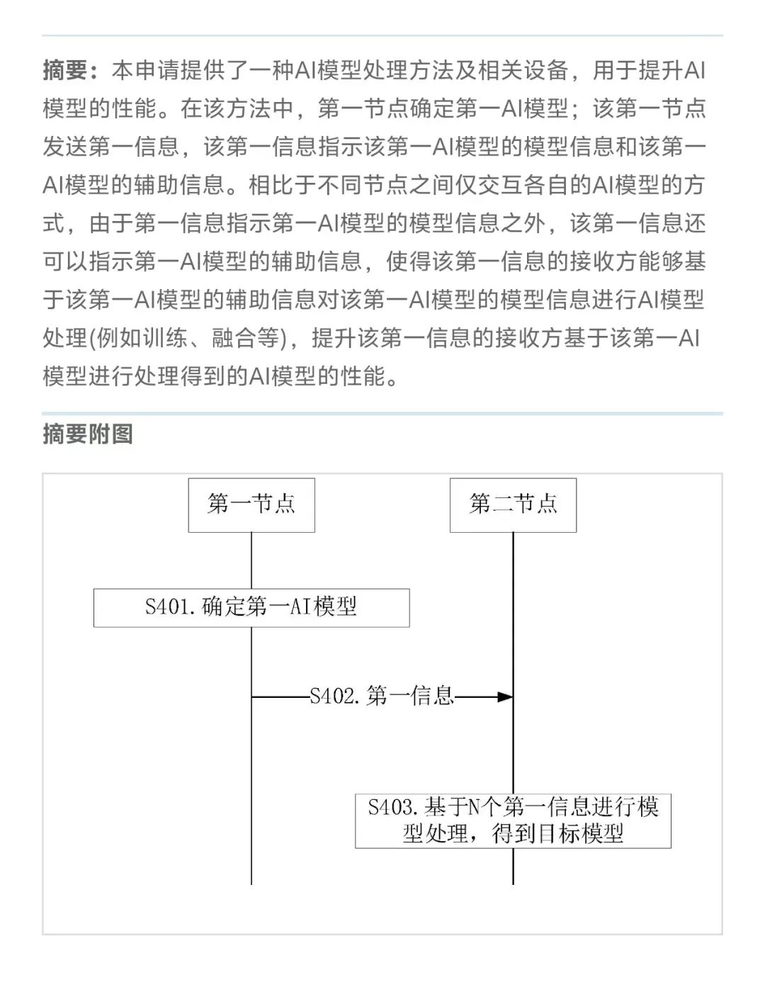 其中,2月7日,华为申请的“一种人工智能模型处理方法及相关设备”专利公布,该专利提供了一种AI模型处理方法及相关设备,用于提升AI模型的性能。