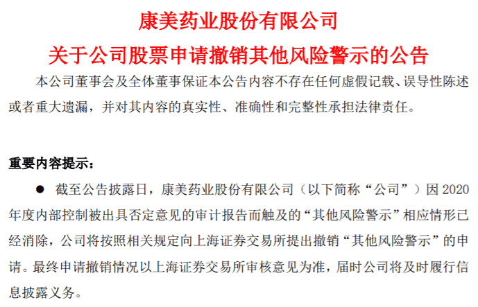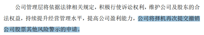 ST康美表示,公司将择机再次提交“撤销公司股票其他风险警示”的申请。
