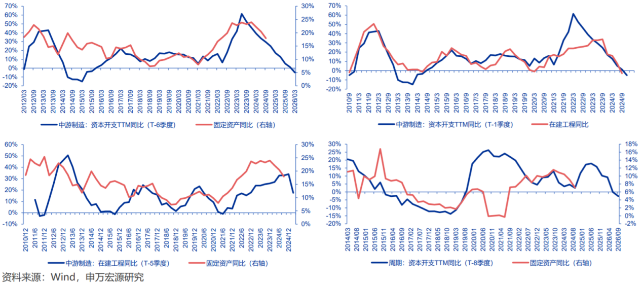 2)2026年中游制造行业可能迎来历史第一次真正的供给出清,彼时A股中游制造行业的固定资产增速可能低于5%,供需格局改善所需的需求增速大幅降低。