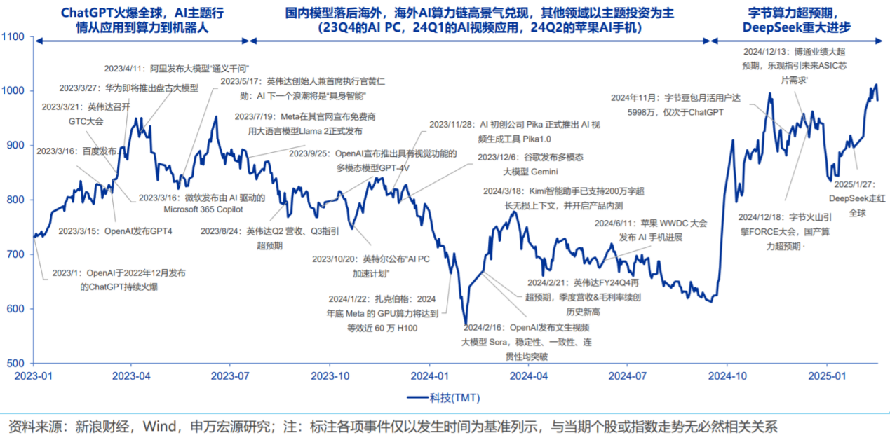 2025年春节以来,AI产业各环节行情全面爆发,符合历史经验2023-24年A股的AI行情以美股映射为主,领涨的是海外AI算力产业链;2025年A股的AI行情自主性更强,国内AI算力需求兑现期已开启,国内AI应用预期全面提前发酵