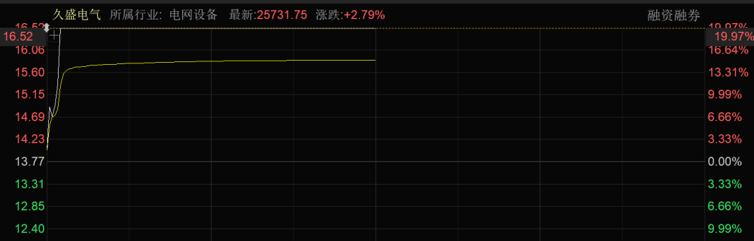 久盛电气开盘后仅约4分钟就垂直20%涨停,永鼎股份、合锻智能、兰石重装等也均在5分钟之内快速涨停。