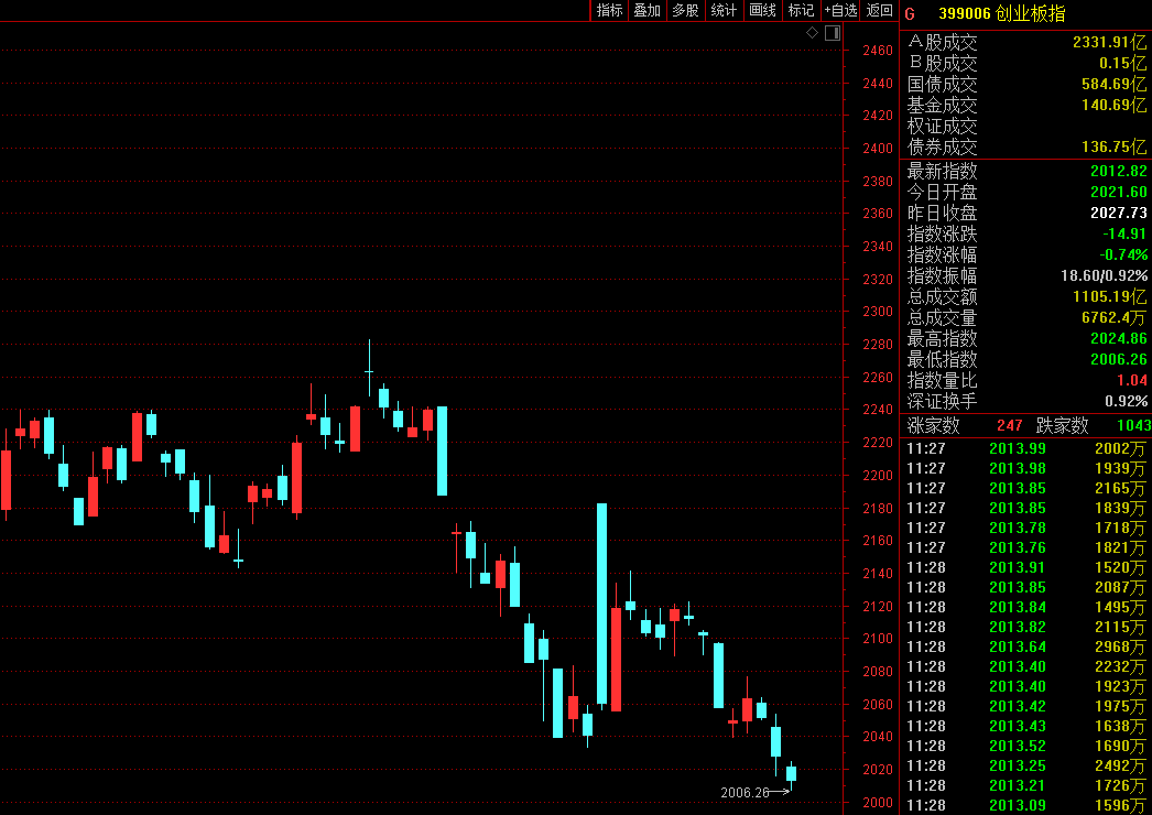今日早盘,A股微幅震荡,创业板指走势低迷,逼近2000点整数关口,创2020年4月以来近三年半新低。