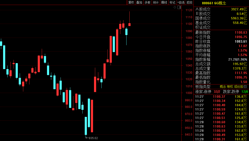 实际上8月底以来,6G概念就连续强势上攻,累计涨逾20%,远远超过同期大盘走势。在6G概念强势的带动下,电信运营、通信设备、卫星导航等相关板块纷纷走强,大富科技、武汉凡谷、华脉科技等涨停或涨超10%。
