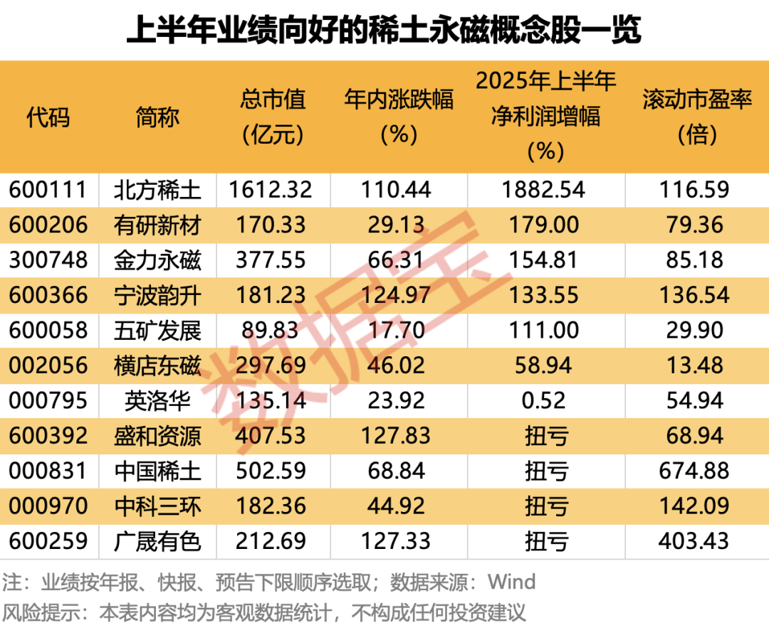 龙头股北方稀土净利润更是同比暴增超18倍,有研新材、金力永磁、宁波韵升、五矿发展净利润同比增幅均超100%,盛和资源、中国稀土、中科三环、广晟有色实现扭亏为盈。