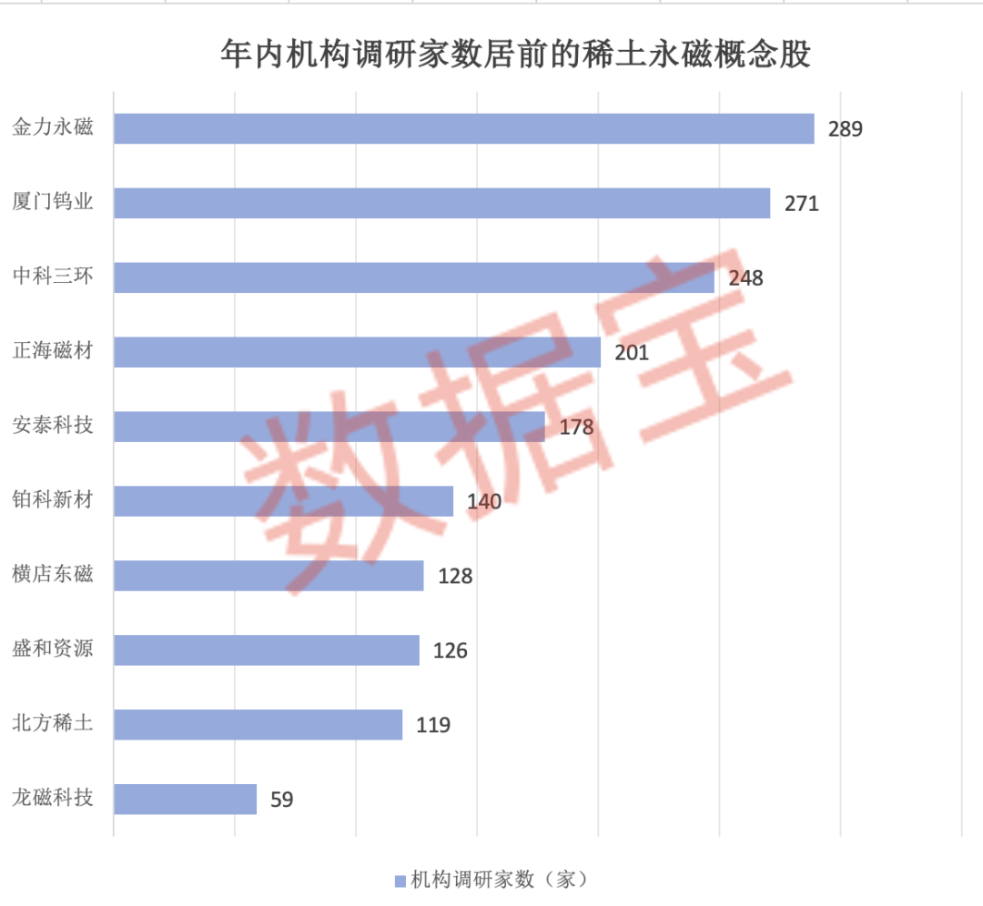 今年以来,稀土永磁板块受机构关注,有20只稀土股年内迎来机构调研。金力永磁、厦门钨业、中科三环、正海磁材参与调研的机构均超过200家。
